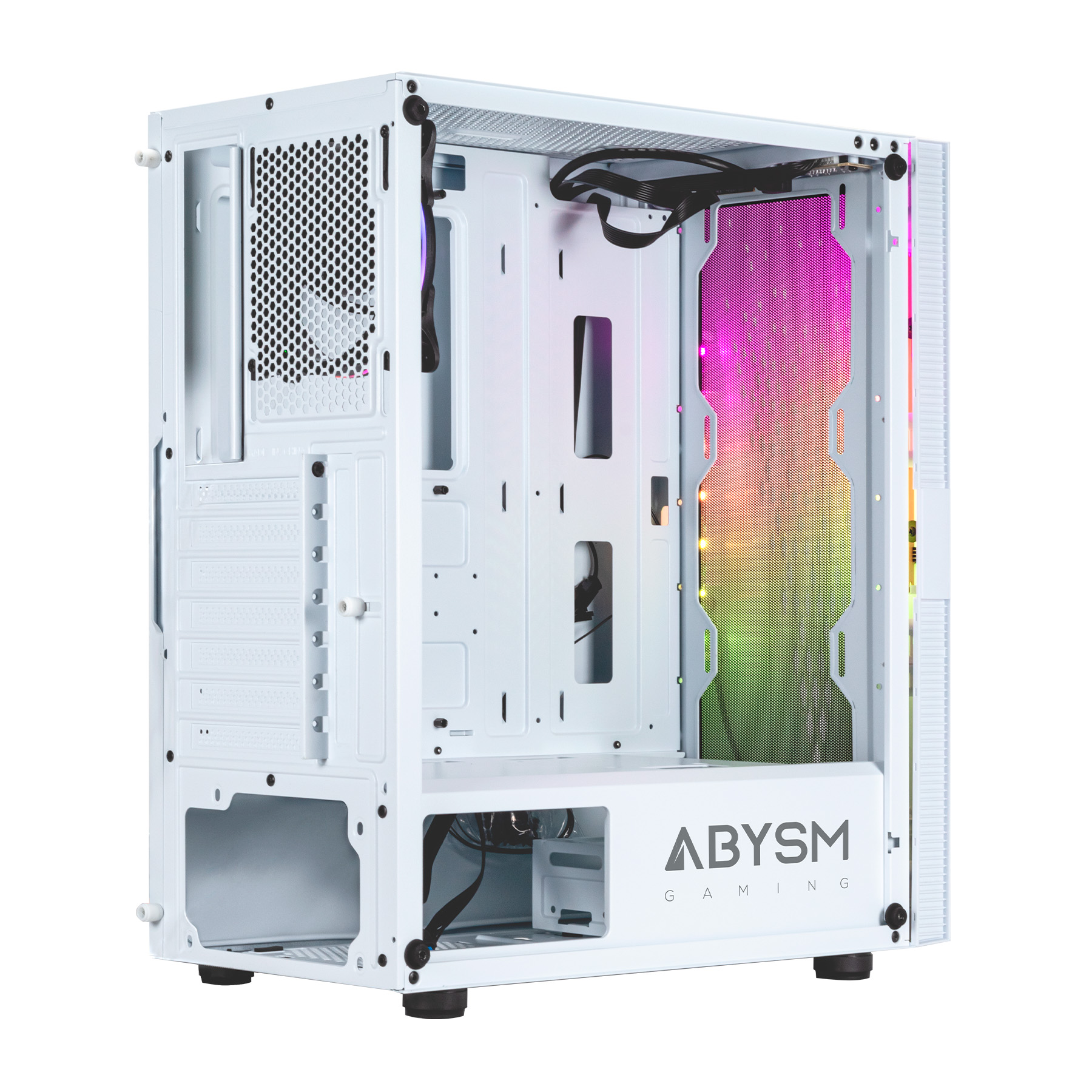 Com a fonte de alimentação instalada, oculta os cabos e o grande painel esquerdo de vidro temperado que apresenta uma construção limpa e organizada, também pode configurar uma instalação de nível profissional.