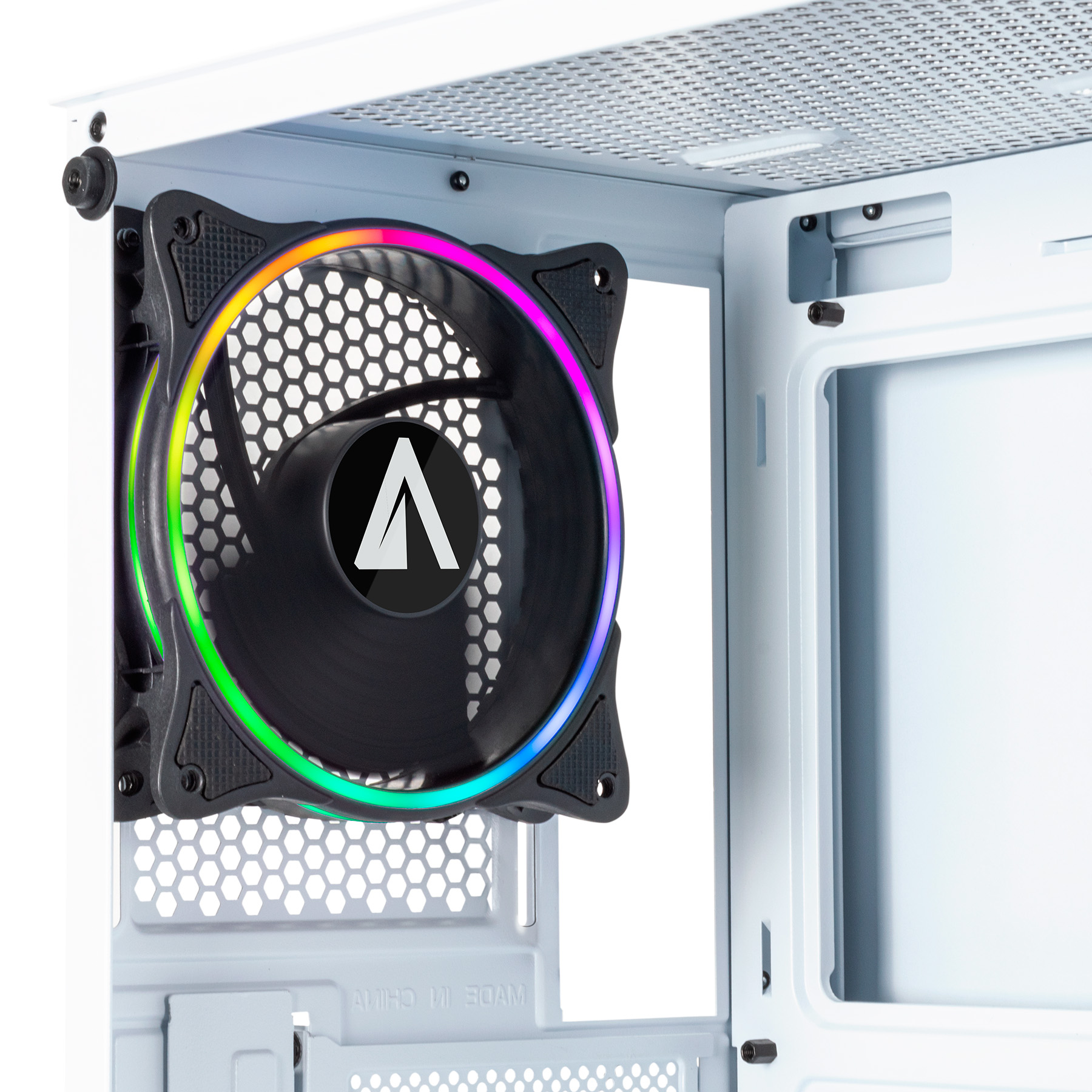 A DANUBE KOLPA é fornecida com uma ventoinha traseira (12 cm) e com espaço suficiente para alojar mais 3 ventoinhas na parte frontal + 2 na parte superior. Inclui uma faixa de LED alojada no painel frontal + HUB ARGB para 4 ventoinhas.